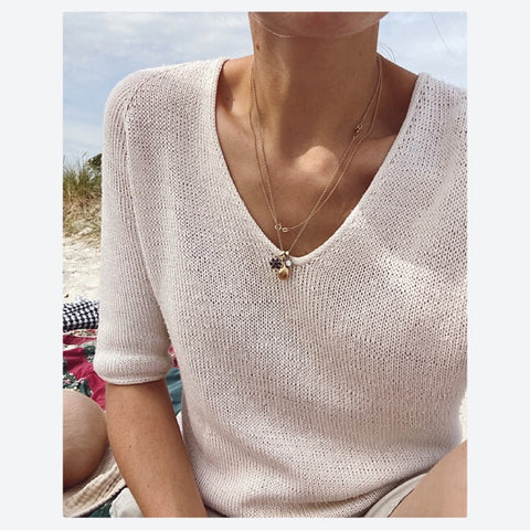 I usually lead with details about the pattern, but when you’re using Quince & Co Sparrow the main character in the story is always the yarn. Sparrow is one of my absolute favourite summer yarns, I never ever get tired of wearing the garments I make with it and I’m always planning my next project with it in the back of my head. It’s the best linen I’ve ever come across, once it is washed it is deliciously soft, cool, light and comfortable. It’s not that I don’t work with other yarns, it’s just that this is just the one I always go back to. I have two sweaters made with it and I wear them as soon as the weather gets warm – they’re like my summer uniform. I need to make a third this year because I need it in another colour (which is really the only thing that’s been holding me up).